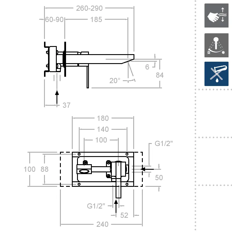 - Индивидуальный дизайн: Встраиваемая конструкция смесителя позволяет создать стильный и современный вид, идеально подходящий для любых интерьерных решений.