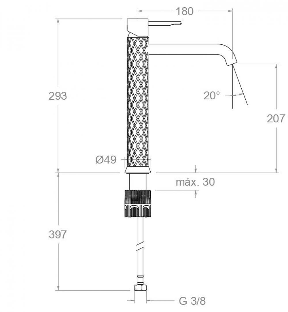 - Высота 293 мм и длина излива 180 мм делают смеситель идеальным вариантом для накладных раковин.