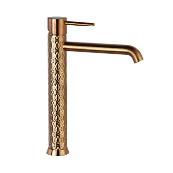 Высокий профиль смесителя, достигающий 293 мм, идеально подходит для накладных раковин, добавляя им нотку элегантности. Длина излива в 180 мм обеспечивает удобство в использовании, в то время как ромбовидный дизайн, характерный для коллекции Odisea, великолепно вписывается в любой интерьер.