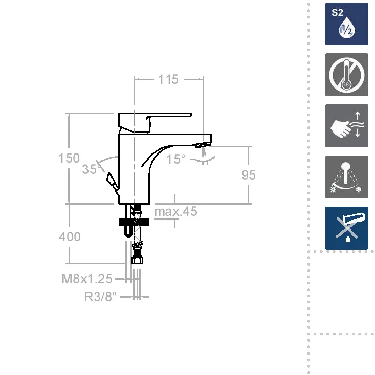 Высота изделия в 150 мм и излив длиной 115 мм делают его идеальным выбором для небольших, погружных или навесных раковин. Смеситель RS-Q 930102 не только украсит ваш интерьер, но и предоставит превосходный функционал благодаря встроенным инновациям.