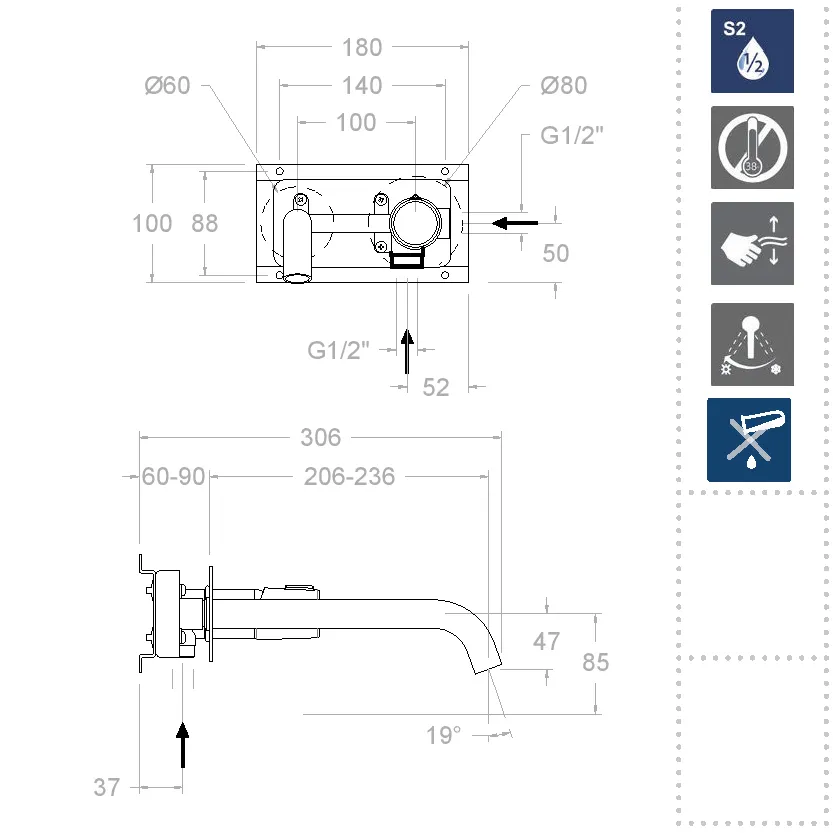 Бренд Ramonsoler славится своими передовыми решениями, и эта модель не стала исключением. Благодаря системе двуступенчатого открытия C2/S2, вы можете сократить расход воды до 50%, сохраняя прежний комфорт. Лёгкое сопротивление при полном открытии потока предоставляет полную власть над расходом воды, при этом уникальная система аэрации обеспечивает плотный поток даже при низком давлении.