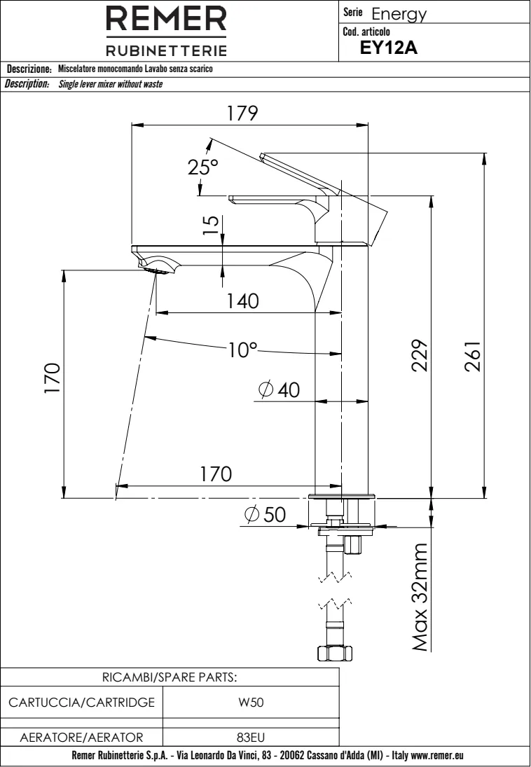 Модель EY12ANO имеет фиксированный излив длиной 140 мм и высотой 170 мм, что делает его идеальным вариантом для большинства раковин. Установка возможна как на раковину, так и на столешницу, что добавляет гибкости в выборе места установки. Смеситель не оснащён донным клапаном и отверстием в теле, что только подчеркивает его минималистичный и лаконичный дизайн. Продукция от бренда Remer славится высоким качеством и долговечностью, и эта модель не является исключением.