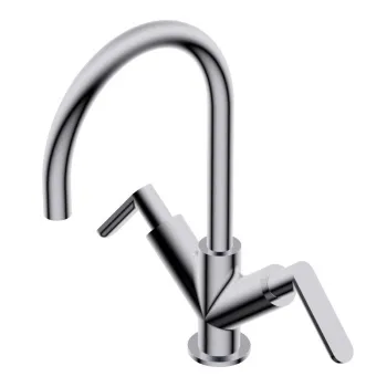 Смеситель для раковины Ritmonio Diametro35 Elegance (арт. PR54AB202CRL) выполнен в элегантном хромированном исполнении. Оснащен двумя ручками для удобного регулирования температуры и напора воды. Смеситель с донным клапаном и поворотным изливом идеально подходит для установки на столешницу, добавляя в ванную комнату современный стиль и практичность. Механизм с керамическим картриджем гарантирует долгосрочную и надежную работу. В комплекте предусмотрены гибкие подводки для удобства подключения.