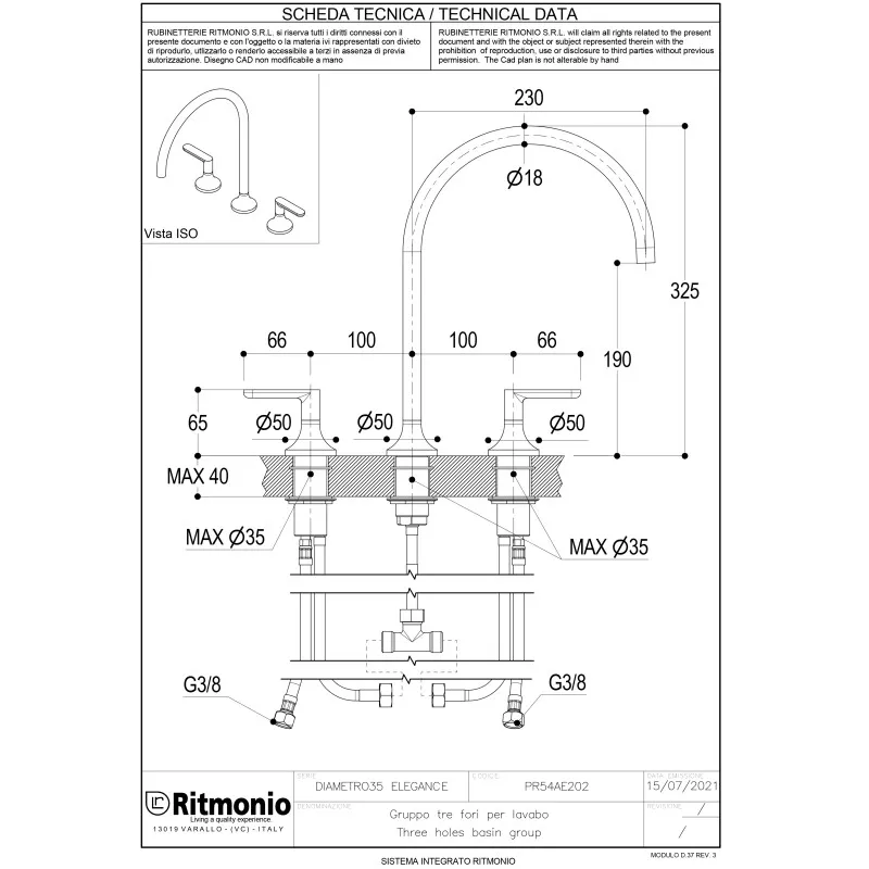 Смеситель для раковины Ritmonio Diametro35 Elegance (арт. PR54AE202CRL) с двумя рычажными ручками и поворотным изливом в цвете хром — это идеальное решение для вашего современного интерьера. Изготовлен из прочной латуни, он обладает высокой надежностью и долговечностью. Смеситель предназначен для монтажа на раковину и имеет три отверстия для установки. Его элегантный и минималистичный дизайн с поворотным изливом длиной 23 см и высотой излива 19 см идеально подойдет для любых современных ванных комнат. Керамический картридж обеспечивает стабильную работу и долговечность устройства.