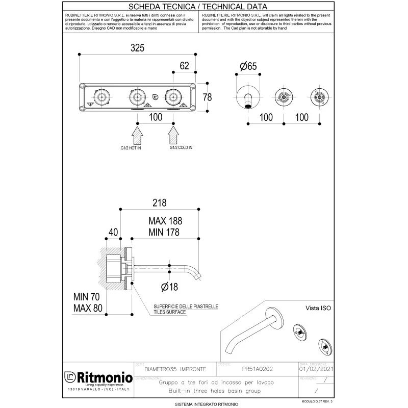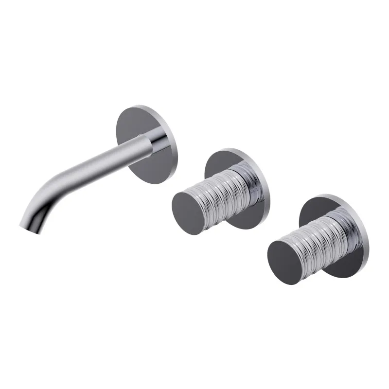 Смеситель для раковины Ritmonio Diametro35 Impronte арт. PR51AR202CRL — элегантная внешняя часть настенного смесителя на три отверстия, выполненная в современном дизайне с хромированным покрытием. Модель предназначена для установки на стену и станет стильным акцентом в интерьере ванной комнаты.