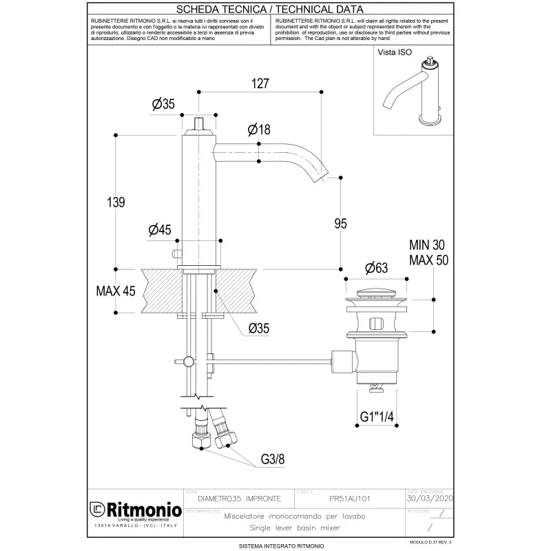 Смеситель для раковины Ritmonio Diametro35 Impronte арт. PR51AU101CRL выполнен в стильном современном дизайне и предназначен для установки на столешницу. Модель изготовлена из прочной латуни с хромированным покрытием, что обеспечивает надежность и долговечность эксплуатации.