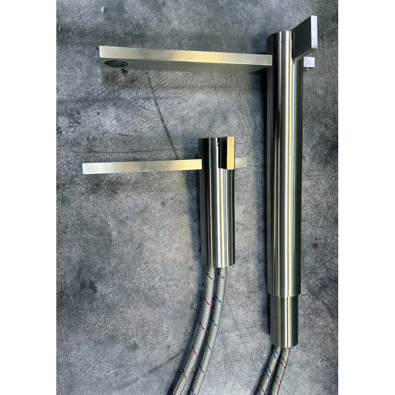 Высокий смеситель для раковины Ritmonio DOT316 арт. PR50AF201INOX выполнен из нержавеющей стали. Этот смеситель с одним отверстием предназначен для монтажа на столешницу. Уникальная угловатая форма и современный дизайн делают его отличным выбором для стильных ванных комнат. Смеситель не оснащен донным клапаном и имеет фиксированный излив длиной 18.4 см. Управление смесителем осуществляется с помощью вентильного механизма и керамической кран-буксы. Подходит для установки с гибкой подводкой.