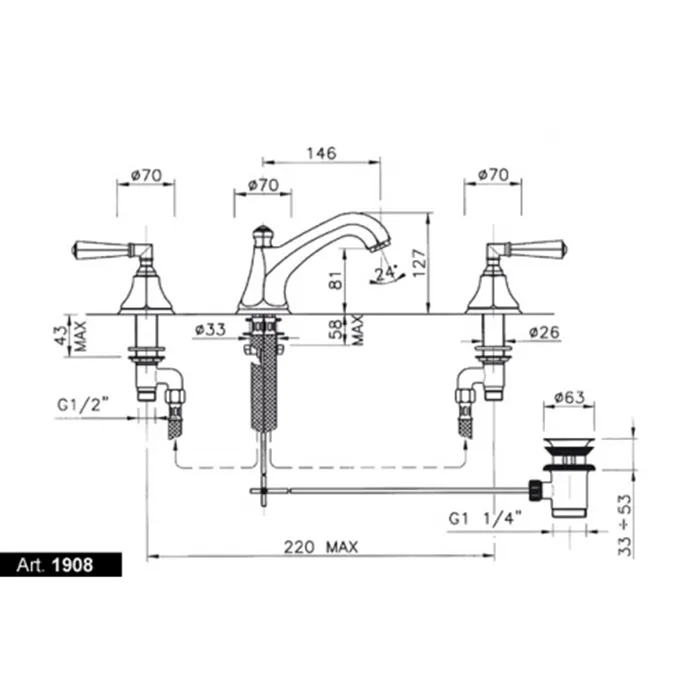 Смеситель для раковины с автоматическим изливом Nicolazzi Teide 1908CR17 ручки crystal lever, хром