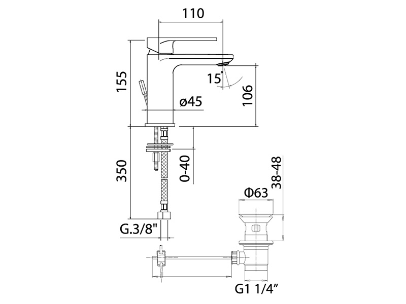 Смеситель для раковины Mamoli SADLER 460100006051 с донным клапаном, цвет хром.