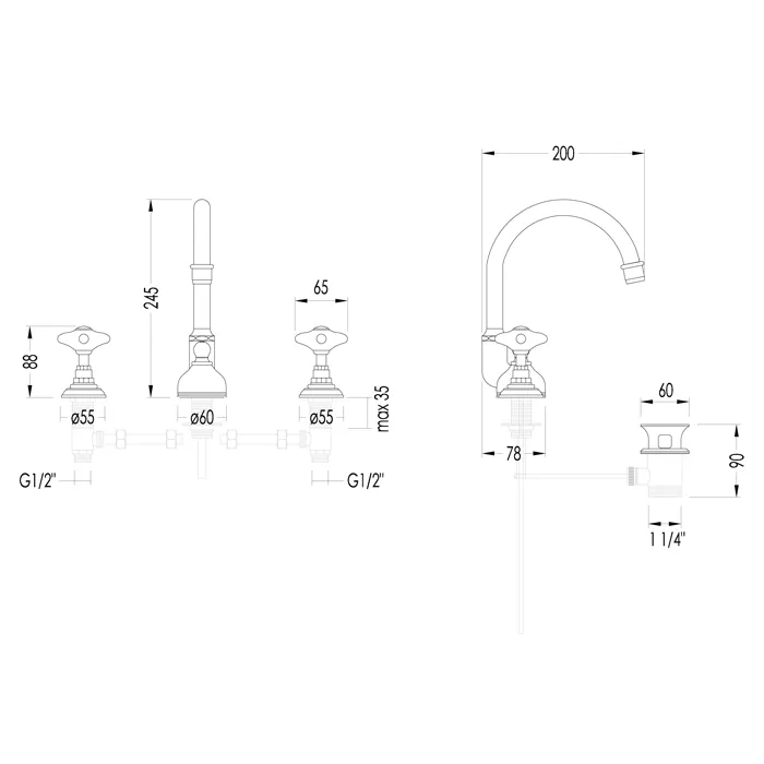 Смеситель для раковины с высоким изливом Devon&Devon White Rose UTWR700ANK никель