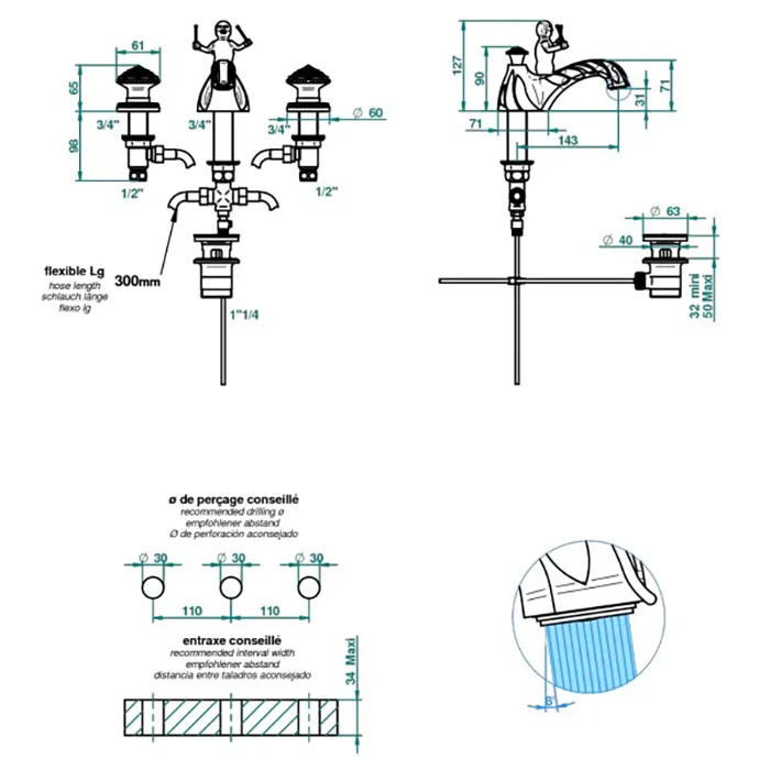 Смеситель для раковины THG Amour De Trianon G24-F01-151 полированное золото