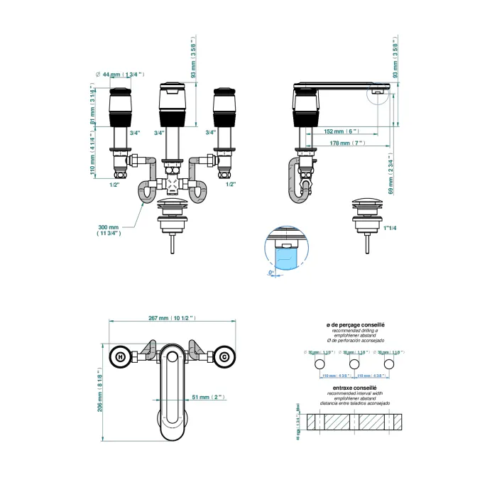 - Тип монтажа: на 3 отверстия