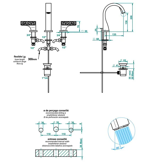 - Тип монтажа: на 3 отверстия