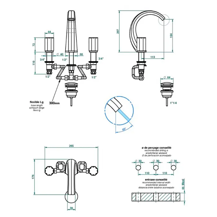 - Тип монтажа: на 3 отверстия