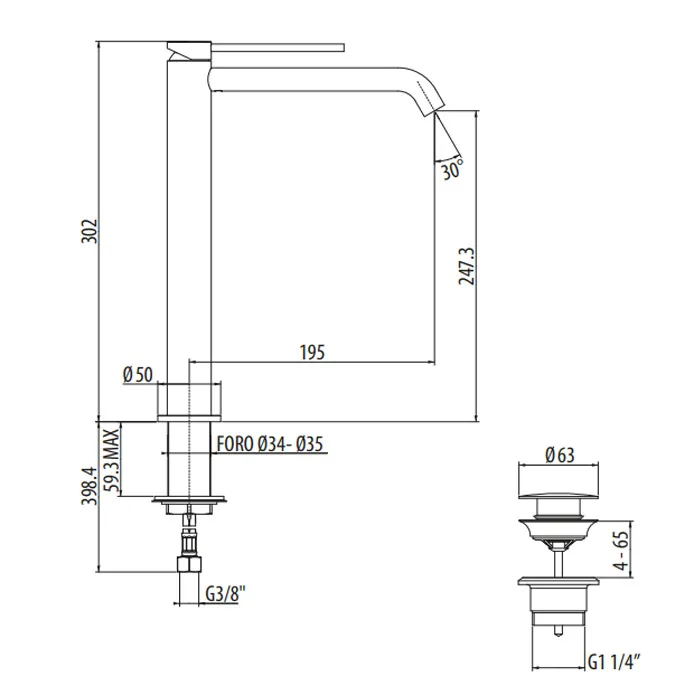 Смеситель для раковины высокий Gattoni Circle Two 302 9148/91NO черный