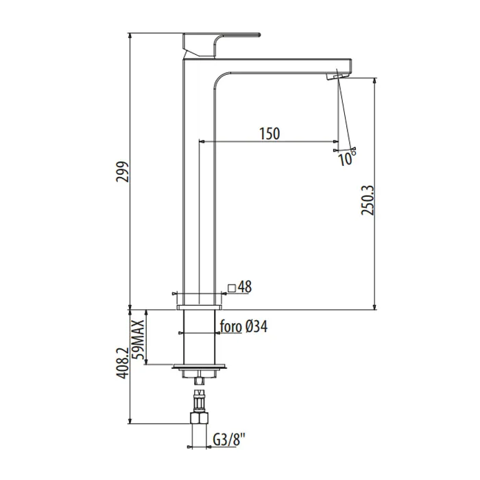 Длина излива, см