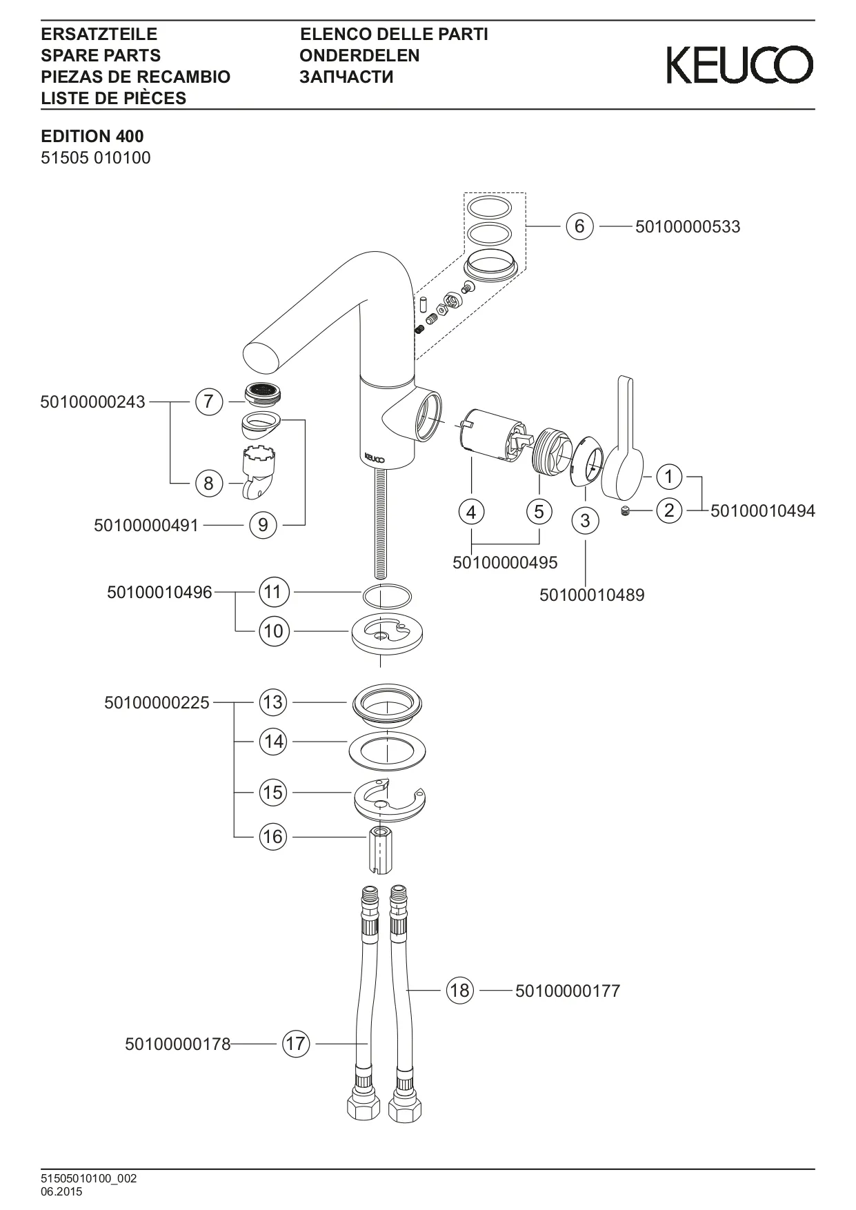 Однорычажный смеситель для умывальника 150 Keuco EDITION 400, 51505050100, без гарнитуры, никель шлифованный