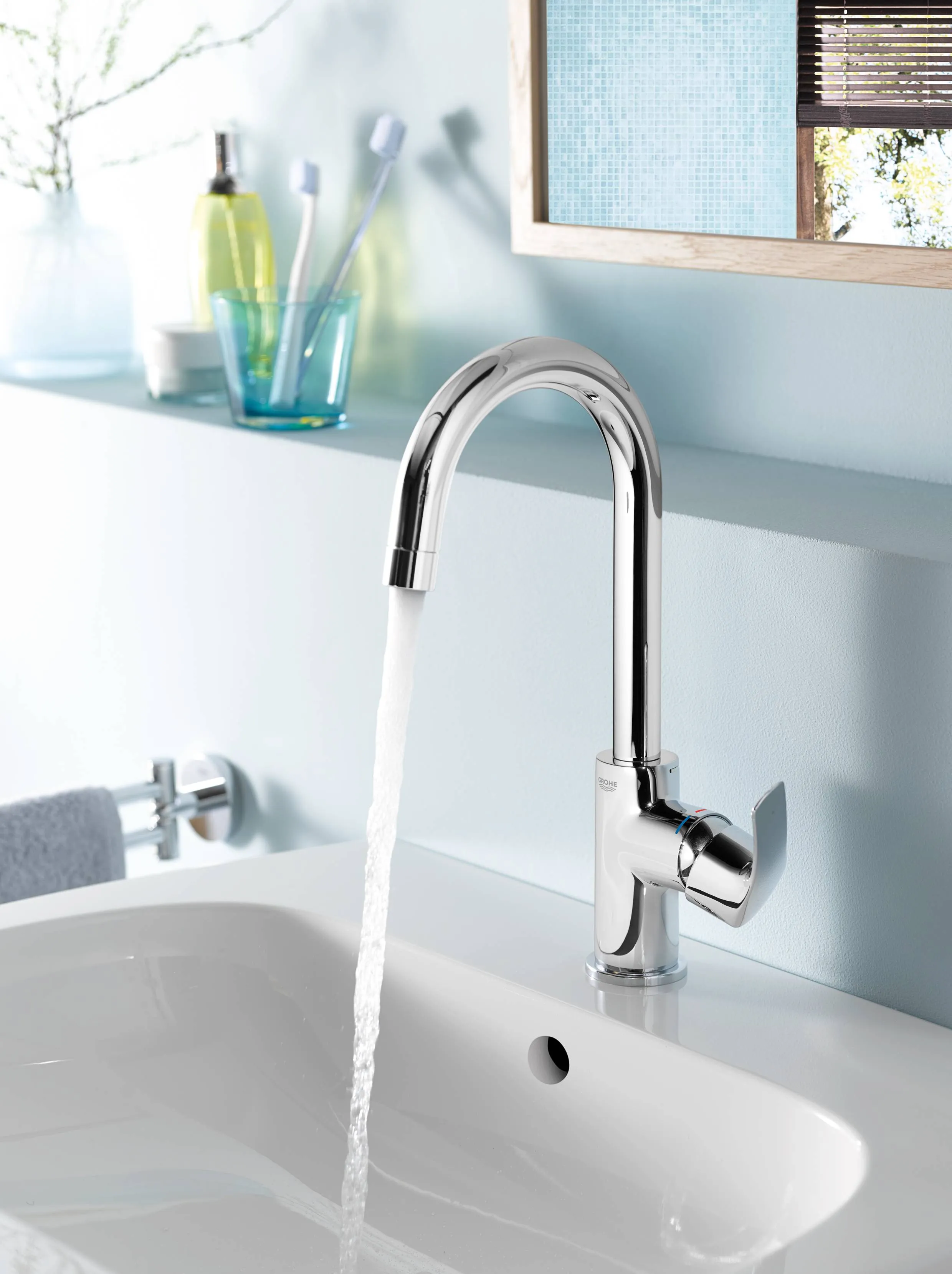 Grohe активно развивает функции, направленные на снижение потребления воды и энергии в смесителях для раковины:
