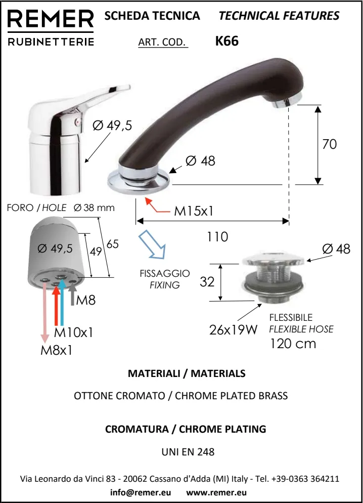 Смеситель для парикмахерской Remer Kiss (артикул K66) представляет собой идеальное сочетание функциональности и стиля. С вытяжной лейкой, специально разработанной для удобства использования в парикмахерских, этот смеситель обеспечивает легкость и гибкость в работе. Изготовленный из высококачественной латуни с хромированным глянцевым покрытием, он отличается длительным сроком службы и устойчивостью к коррозии. Классический дизайн с округлой формой излива будет гармонично смотреться в любом интерьере. Рычажное управление и традиционная форма излива добавляют удобства в эксплуатации. Этот смеситель легко монтируется на раковину через два отверстия.