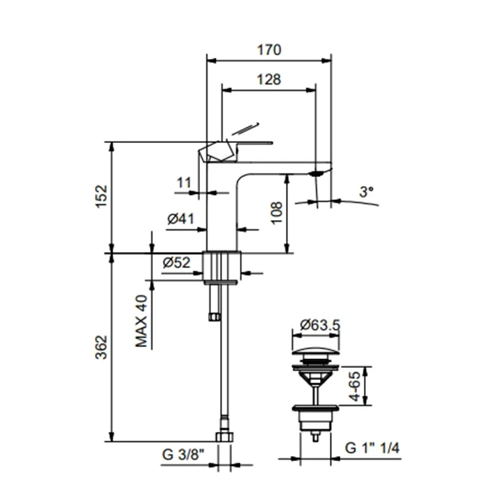 Смесители для раковины Fantini Myo 61 13 V604F черный