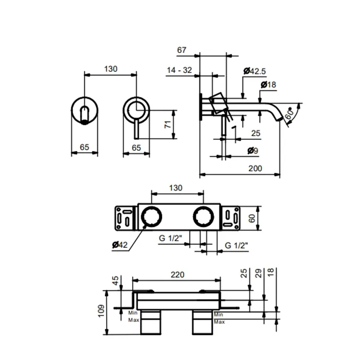Смесители из стены для раковины наружная часть Fantini Nostromo Small 50 02 G913B хром