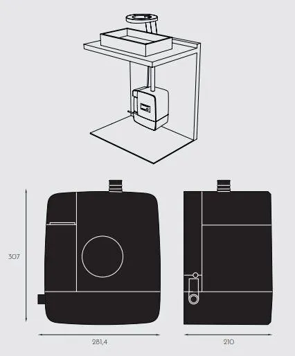 Конструкция выполнена из анодированного кованого алюминия, ABS-пластика и латуни. Мощный двигатель сушилки работает на скорости 32 000 об/мин и выдает поток воздуха до 350 км/ч, обеспечивая быструю сушку рук. Дозатор оснащен ёмкостью на 2 литра с регулируемой подачей мыла, а кран-аэратор NEOPERL расходует всего 1,89 л/мин.