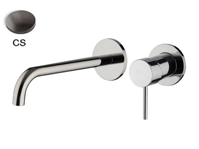 Внешняя часть смесителя для раковины настенного монтажа FIMA CARLO FRATTINI SPILLO UP F3051WLX9CS, излив 200мм, донный клапан click-clack 1``1/4 с переливом, цвет брашированный черный хром. Встроенная часть арт. F3600W приобретается отдельно.