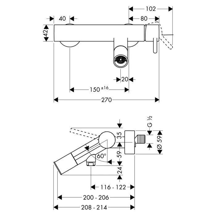 Смеситель для ванны, 27*21.4*h11.8,, хром