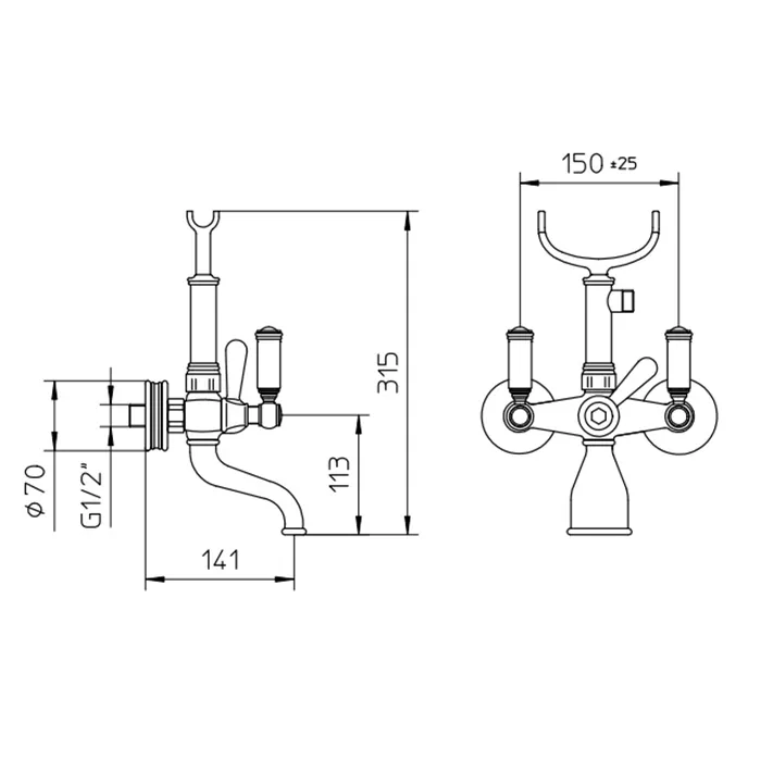 Bossini Liberty Смеситель для ванной, настенный, с ручным душем, цвет: античная бронза Z001103.022