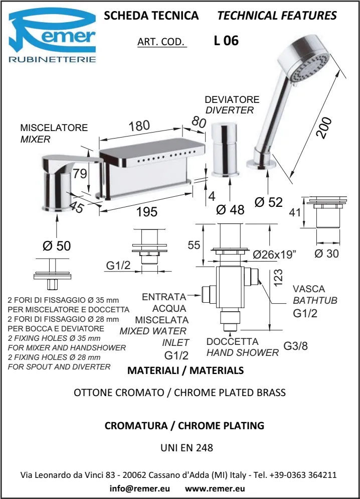 Смеситель для ванны Remer Class Line L06 — это воплощение элегантности и современного дизайнерского решения. Он относится к коллекции Class Line, что говорит о его высоком качестве и стильном внешнем виде. Этот набортный каскадный смеситель представлен как часть ассортимента смесителей для ванны. Особенностью данного смесителя является рычажное управление, обеспечивающее удобство и точность регулировки температуры и напора воды.