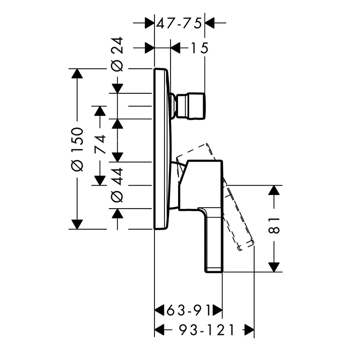 HG Metris S Смеситель для ванны, встраиваемый, переключатель вакумный, внешняя часть, с защитой EN1717, цвет: хром
