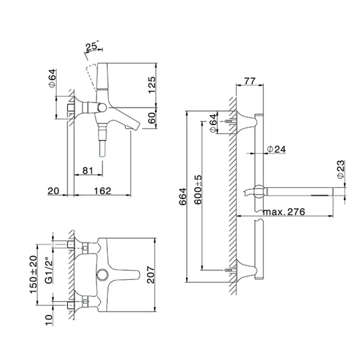 Комплект для ванны с душем Cisal Vita смеситель+ душевой гарнитур штанга L=664мм, шланг и ручной душ 1 режим, хром VI00006421