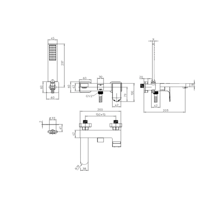 Комплект наружный для ванной Bossini GILLO лейка Flat-one. Душевой держатель фиксированный из латуни. шланг из латуни 125 см... цвет хром
