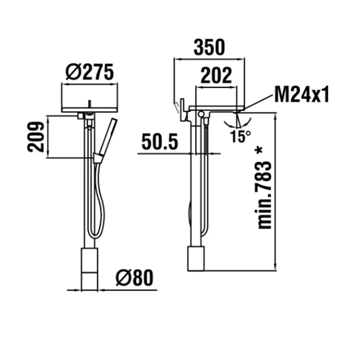 Laufen Kartell Смеситель для ванны на 1 отв, напольный с ручным душем, цвет: хром (,без встроенной части HF503000000000)