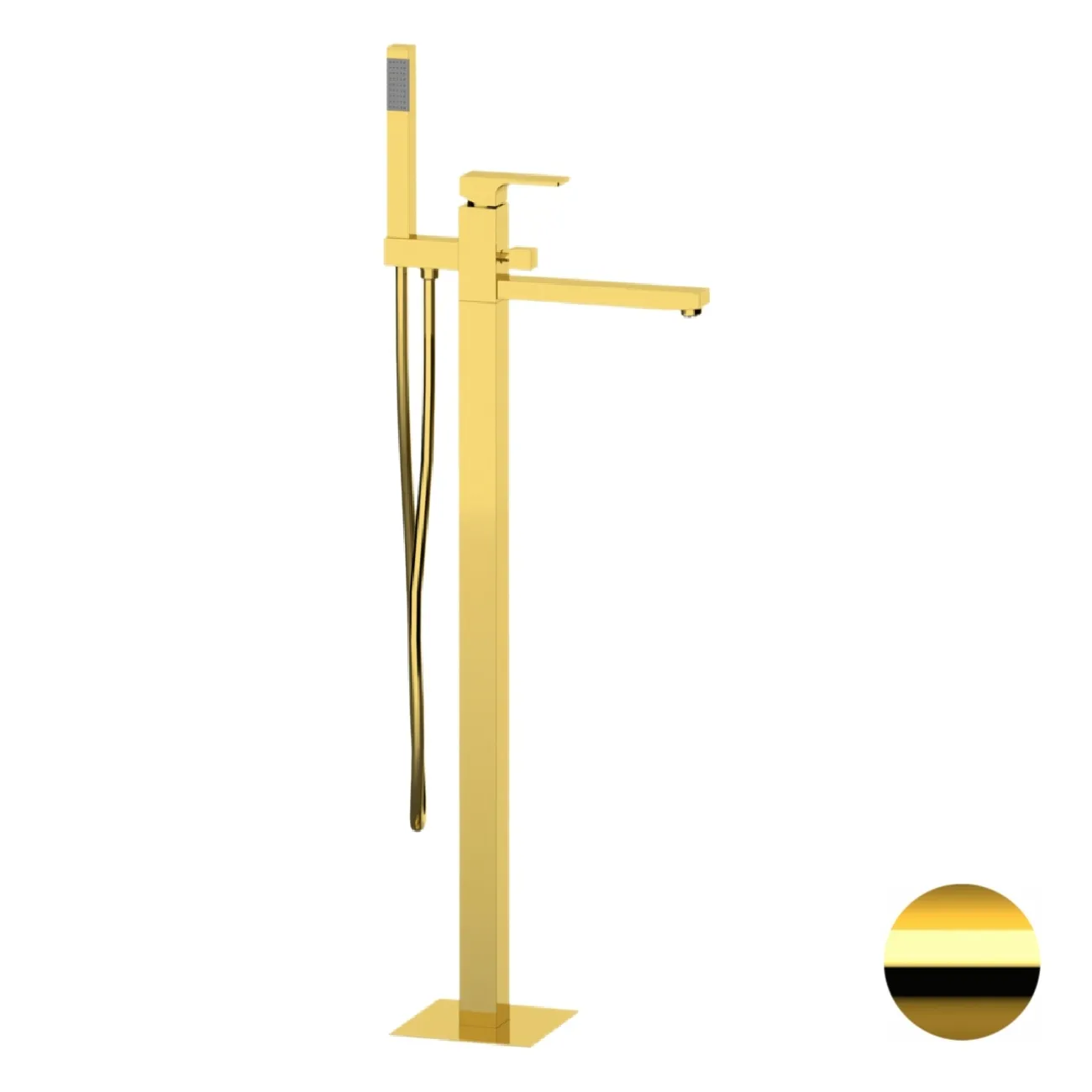Представляем вашему вниманию элегантный напольный смеситель для ванны из коллекции Absolute от бренда Remer. Этот современный смеситель выполнен из высококачественной хромированной латуни и представлен в глянцевом золотом цвете, который несомненно добавит роскоши в интерьер вашей ванной комнаты. Смеситель оснащен переключателем и душевым комплектом для полного удобства в использовании. Уникальная угловатая форма и фиксированный излив подчеркивают современный стиль изделия.