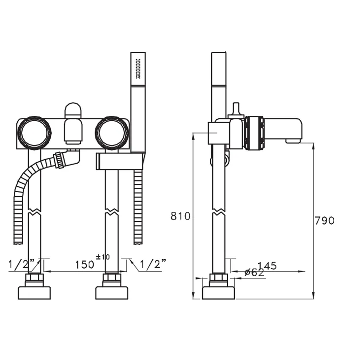 Напольный смеситель для ванны Stella Timeaster 3267/CL306 с ручным душем, круглая ручка d=65 хром, ручка черная TL 02006 CR00N