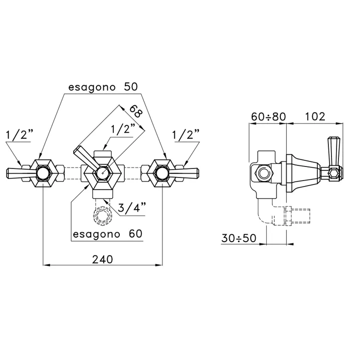 Встраиваемый смеситель для ванны Stella Eccelsa Leve 3254 с переключателем, хром EL 01301 CR00
