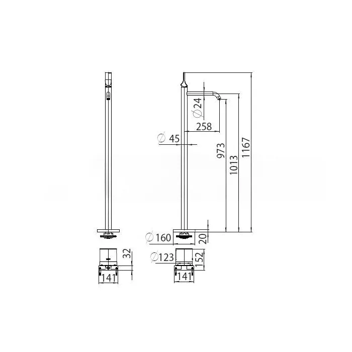 Смеситель для раковины Bossini APICE напольный. однорычажный. излив 258 мм.. внешняя+внутренняя часть. цвет хром