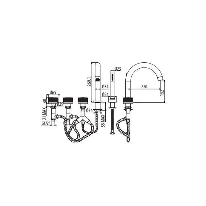 Смеситель для установки на борт ванны Gattoni Md на 5 отверстий, с ручным душем, хром MD400/23C0 / ст,арт. TR400/23C0