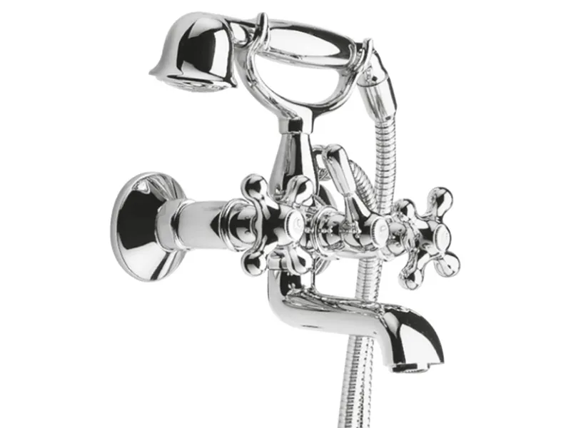 Смеситель для ванны настенный Mamoli EPOCA 1027F311E021 с изливом, шлангом и ручным душем, цвет хром.