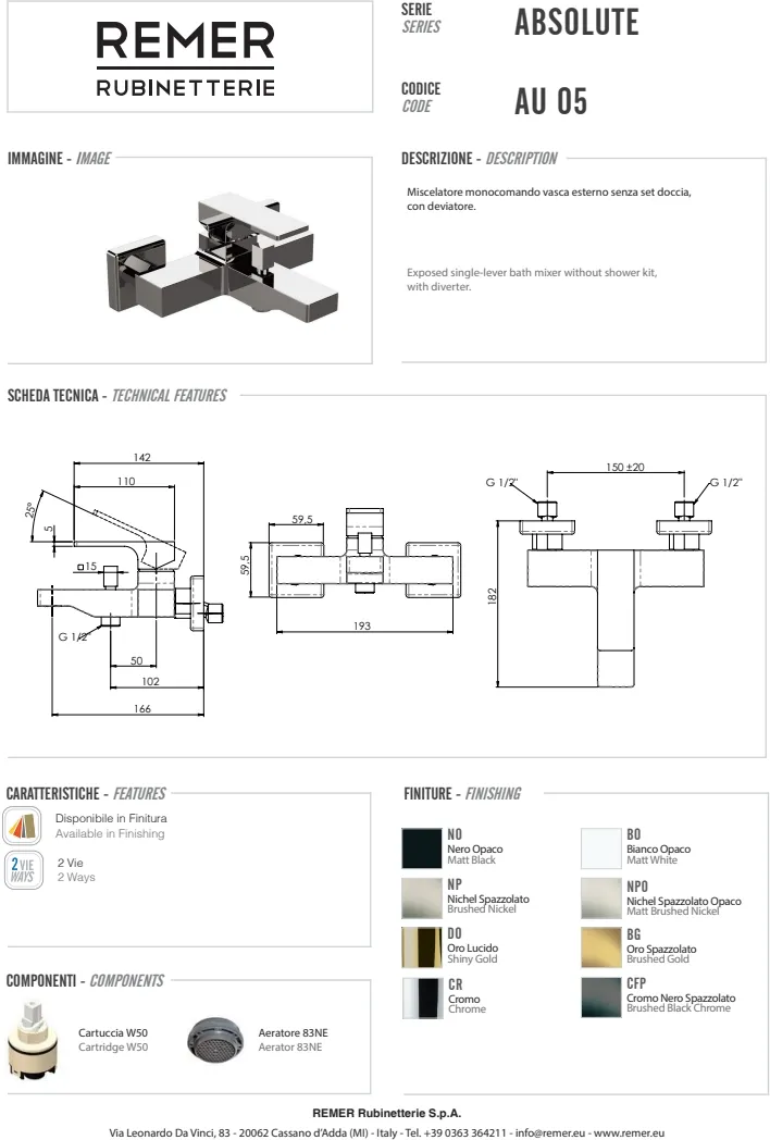 Смеситель для ванны Remer из коллекции Absolute — это идеальное решение для вашей ванной комнаты, сочетающее в себе современный стиль и функциональность. Этот однорычажный смеситель изготовлен из высококачественной латуни, что обеспечивает долговечность и надежность. Угловатая форма и белая матовая поверхность придают изделию элегантный и стильный внешний вид, идеально вписывающийся в современные интерьеры. Модель монтируется на стену и имеет фиксированный излив длиной 166 см, а также поддерживает стандарт подводки 1/2". Благодаря межосевому расстоянию 150 мм и отверстию для монтажа в 2 точки, установка данного изделия будет максимально удобной. В комплекте идет 1500 мм шланг, обеспечивающий дополнительное удобство при эксплуатации.