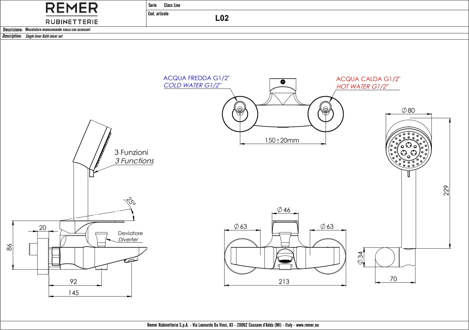 Смеситель для ванны Remer Class Line с литым изливом L02 - идеальное решение для вашей современной ванной комнаты. Изготовленный из прочной латуни, этот смеситель обладает современным дизайном и сочетает в себе функциональность и стиль. Смеситель оснащен душевой системой с гибким шлангом длиной 150 см, что делает его удобным для ежедневного использования. Устройство предназначено для монтажа на стену и обеспечивает простоту управления благодаря рычажному управлению. Хромированное глянцевое покрытие придает изделию элегантный вид и защищает его от коррозии и износа. Модель предлагает четыре режима для ручного душа, что позволяет адаптировать его использование под ваши предпочтения. Этот смеситель станет надежным помощником в вашей ванной комнате на долгие годы, подтверждением чему служит предоставляемая 5-летняя гарантия.