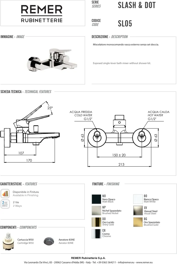 Смеситель для ванны из коллекции Slash & Dot от бренда Remer предназначен для современной ванной комнаты. Этот однорычажный элемент имеет стильный и современный дизайн, благодаря которому он станет настоящим украшением интерьера. Выполненный из высококачественной латуни с глянцевым хромированным покрытием, он обеспечит долговечность и устойчивость к коррозии. Монтаж осуществляется на стену, что позволяет эффективно использовать пространство в ванной комнате. Благодаря фиксированному изливу с длиной 170 см и стандартной подводке 1/2", смеситель легко подключается и управляется. Кроме того, межосевое расстояние составляет 150 мм, что подходит для большинства стандартных установок.