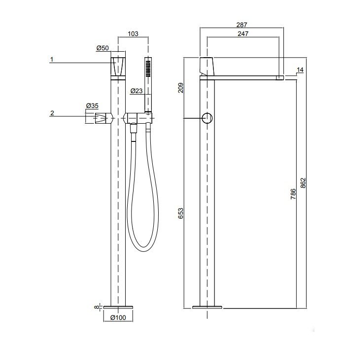 Смеситель для ванны с душем, напольный