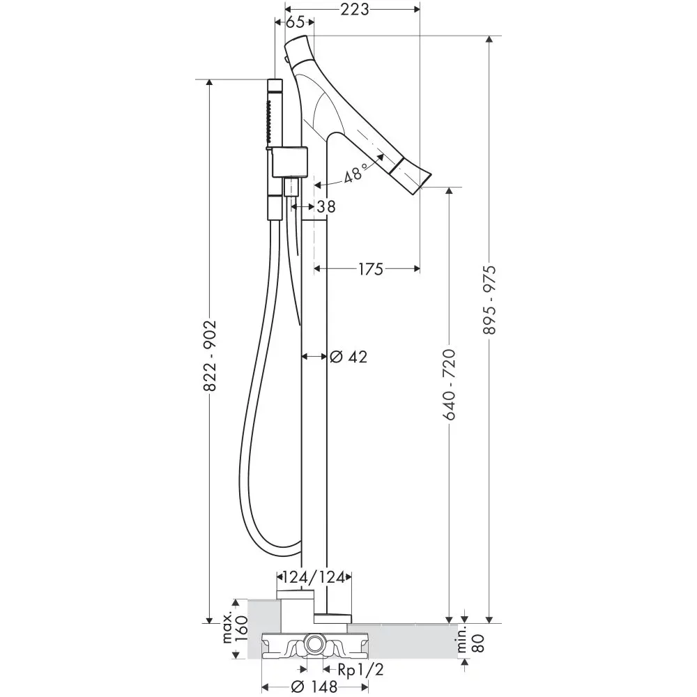 Смеситель термостатический двухвентильный напольный для ванны Axor Starck Organic 12016340 — это идеальное решение для тех, кто ценит комфорт и стиль в своей ванной комнате.
