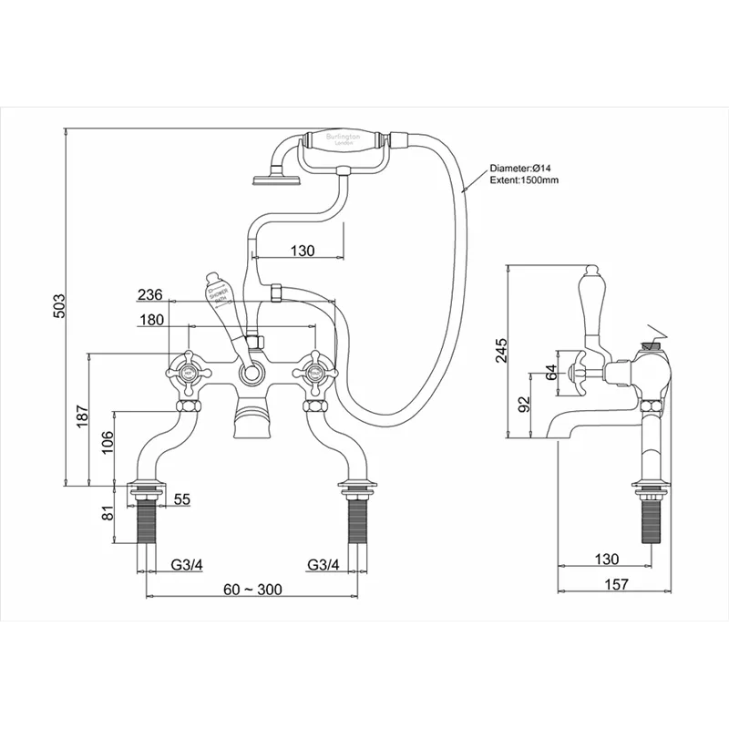 Смеситель для ванны Burlington T8-QT BLA хром/черный