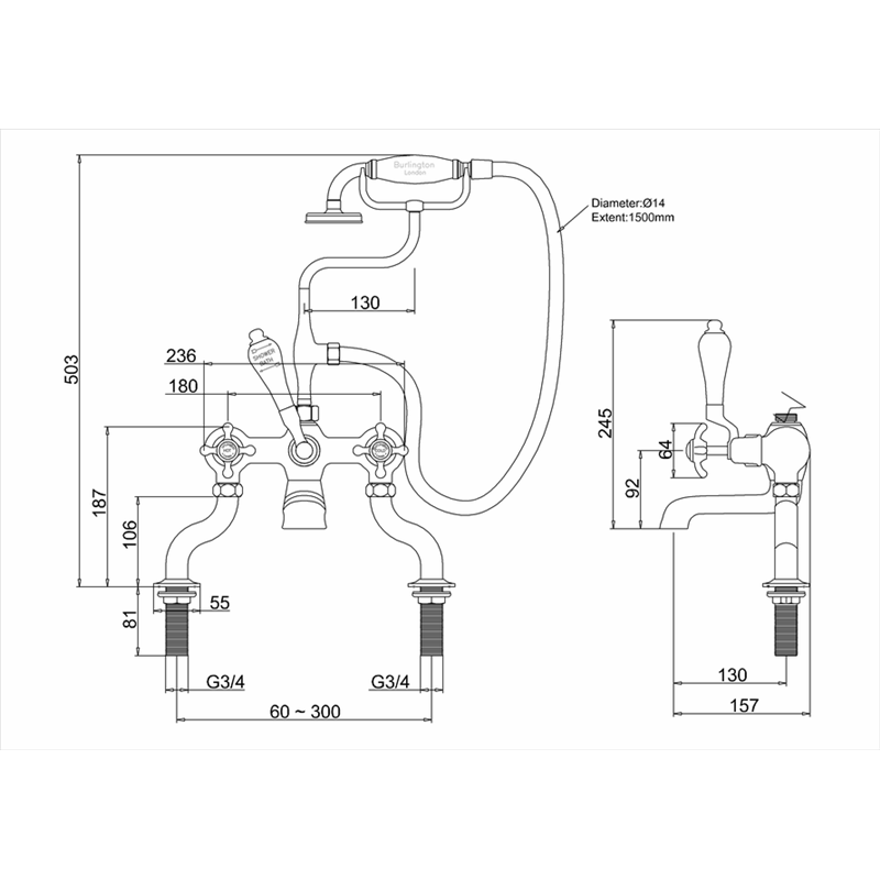 Смеситель для ванны Claremont [CL15 BLA]