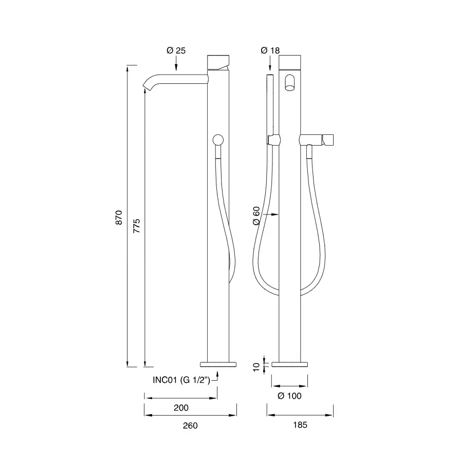 Смеситель для ванны CEA Design Giotto Plus GIO 98 BK S сталь.