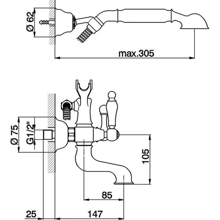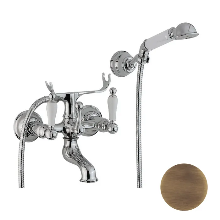 Смеситель для ванны Cisal Arcana Toscana настенный, с ручной лейкой,держателем и шлангом, бронза TS00012027 Акция