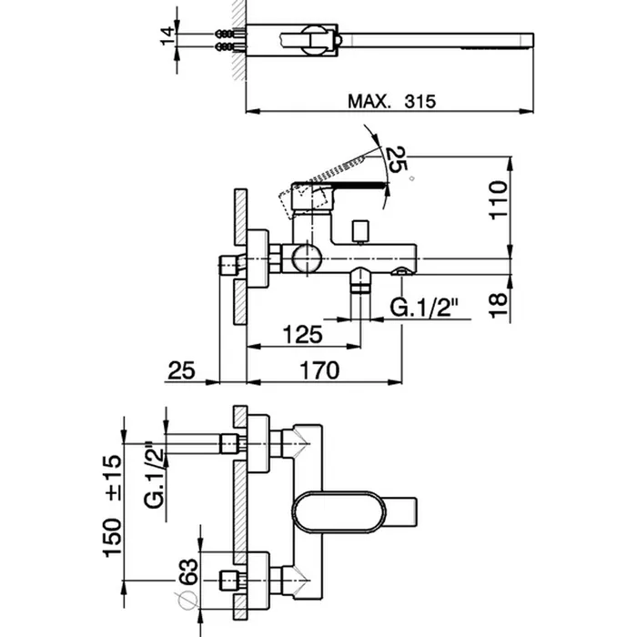 Смеситель для ванны Cisal Lineaviva настенный, с ручной лейкой,держателем и шлангом, хром LV00012021